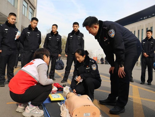 本次活动立足安全育人理念,设置了消防知识宣传与应急救援实践两大互动环节,通过现场实操体验切实增强了师生在消防与应急安全方面的防范意识与实践能力。参与学生领取了消防安全知识答卷并在限定时间内完成作答,在答题过程中进一步加深了对火场逃生、隐患排查等内容的理解。学院教师与章丘区红十字会工作人员现场细致讲解急救知识,指导学生开展心肺复苏实操训练,并演示AED(自动体外除颤器)的使用方法,有效提升了大家的急救技能和动手能力。